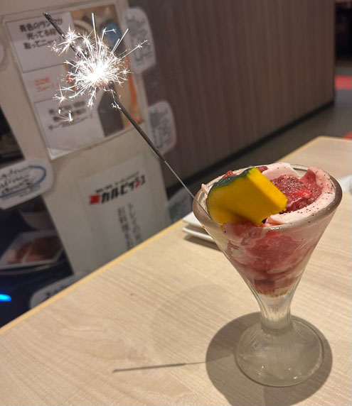 焼肉屋さんへ行ってきました。写真は『肉パフェ』3種類くらいの肉とカボチャがありました。どれも食べやすかったです。